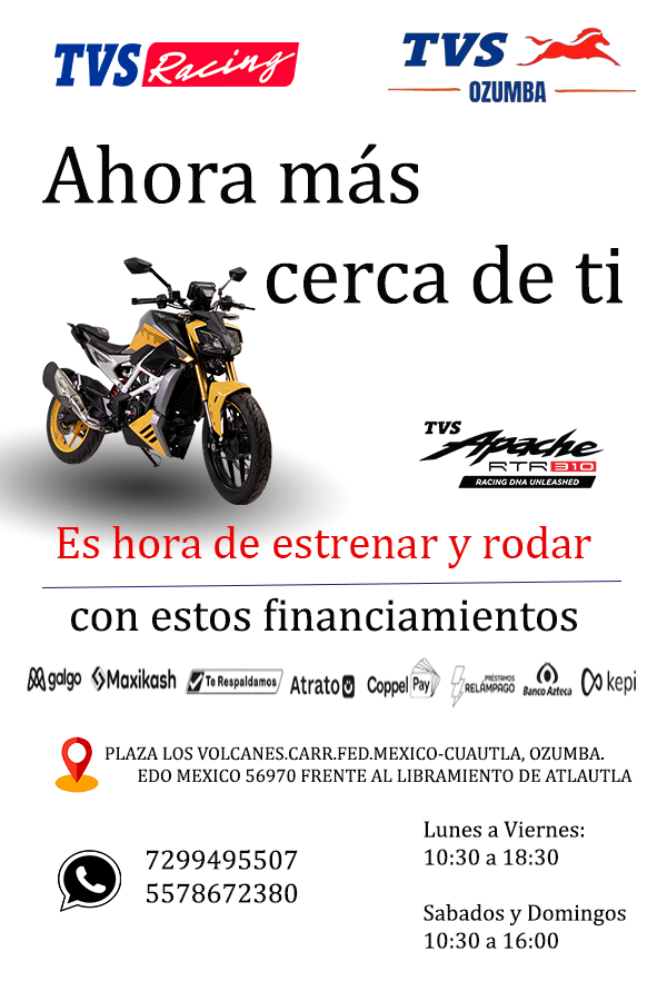 ¡Bienvenido a TVSOzumba! Somos una empresa especializada en la venta de motos en la ciudad de México.